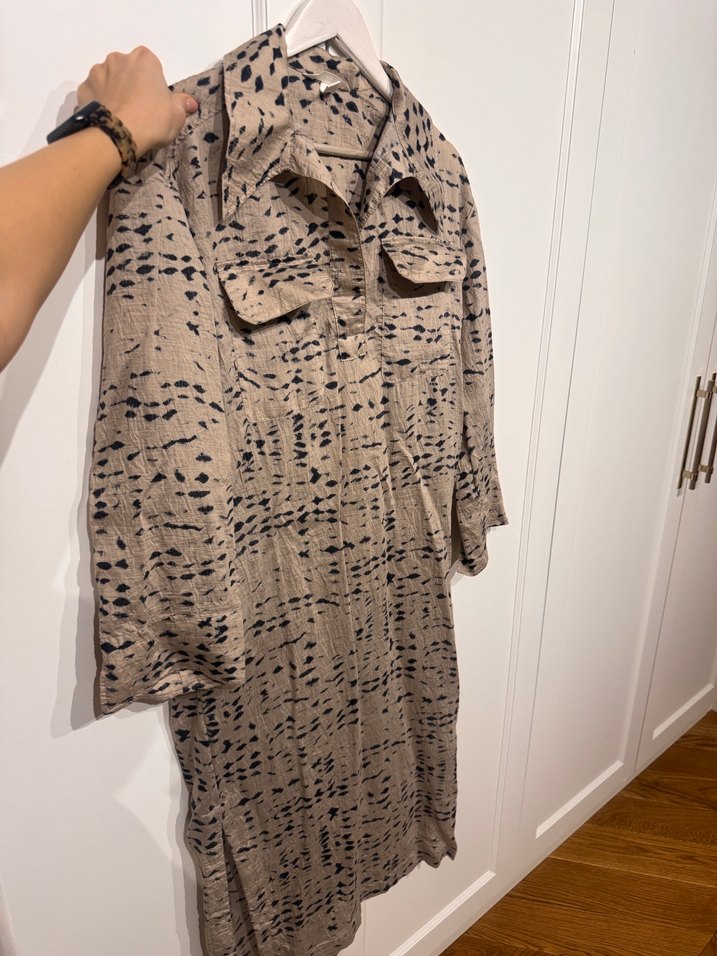 1-2 kez giyildi, H&M, xs beden elbise ama oversize, 36-38 için rahatlıkla dökümlü olur. %75 lyocel kumaş