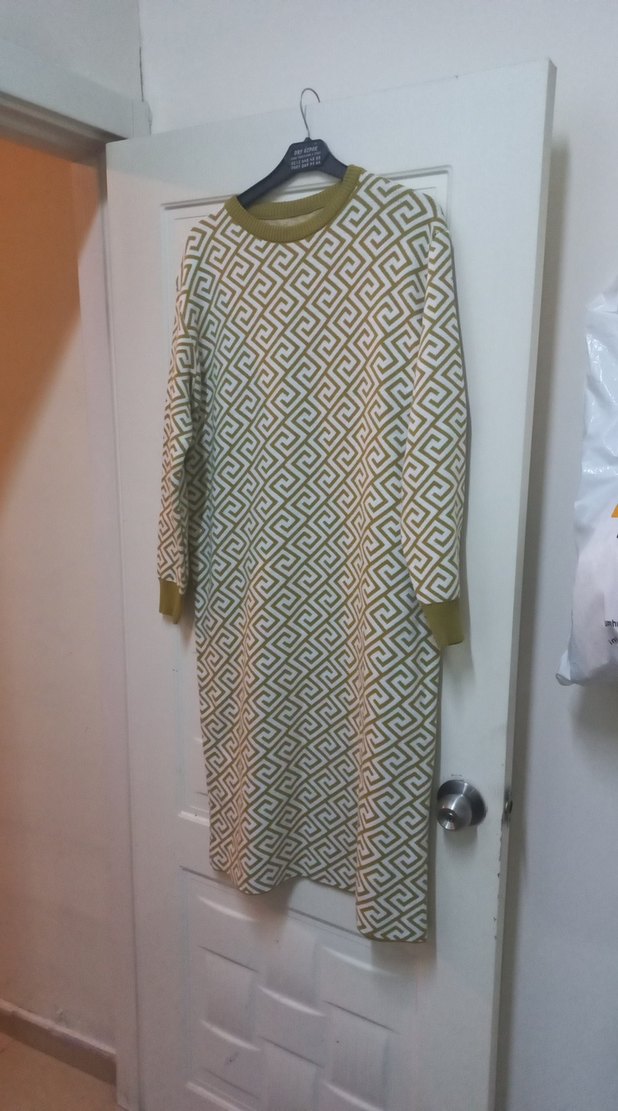 Bej Desenli Uzun Triko Elbise - Görsel 1