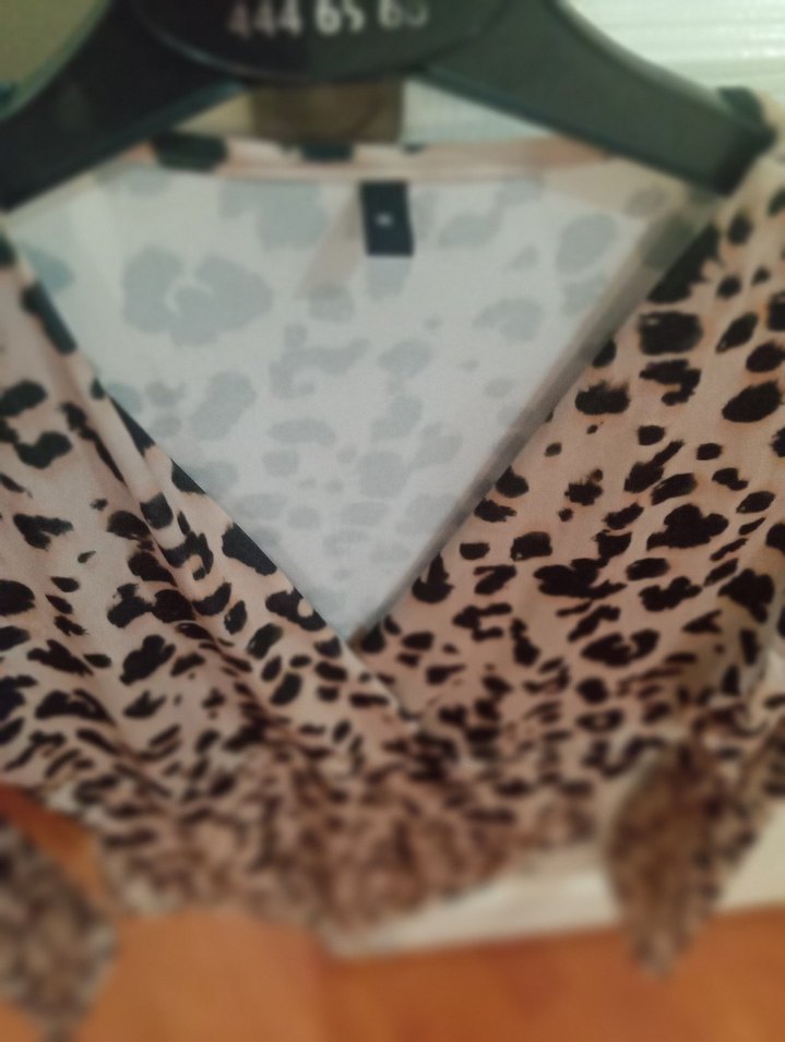 Bej Desenli V Yaka Fırfırlı Kadın Bluz citcitli - Görsel 4