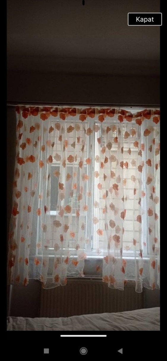 Doğal ışığın yumuşakça süzülmesini sağlayan açık bej renkte, desensiz tül perde.