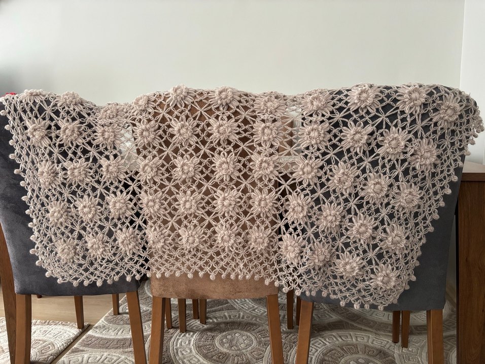 Bej renkte, nakışlı bohem çiçek desenlerine sahip zarif ve detaylı tasarımıyla şık bir şal