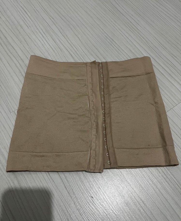 Bej renk, dikişsiz ve orta boy uzunluğa sahip, ön kısmında çıtçıtlı kapama bulunan göğüs korsesi. Destek ve konfor sağlar. M-L beden için uygun.Bana büyük geldiği için satıyorum hiç kullanılmadı sadece denendi.