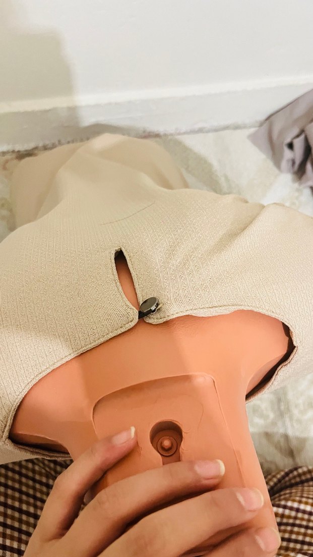 Bej renkli, dikişsiz ve vücuda oturan hemşire korsesi. Normal midi boyda, yumuşak pastel tonu ile rahatlık ve hafif destek sağlar.