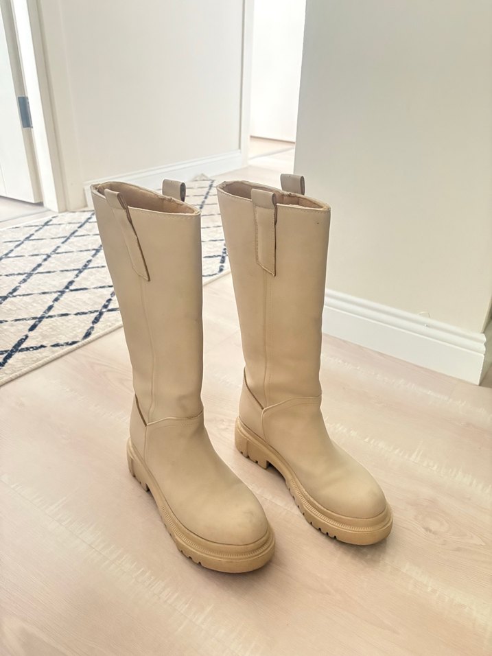 Bej Dizaltı Deri Çizme