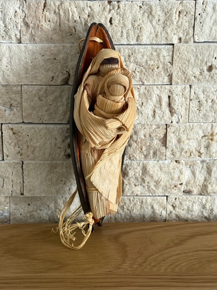 Macaristan menşeili, Tamamı Fualadan yani mısır koçanı kılıfından el ile yapılmış çok orjinal, özel ve kusursuz figürin. Aile teması ile çok hoş bir görünümü vardır . Asma ipi mevcuttur ve vitrinde korunmuştur.