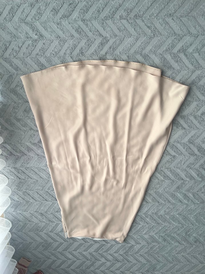 Bej Dökümlü Uzun saten Etek