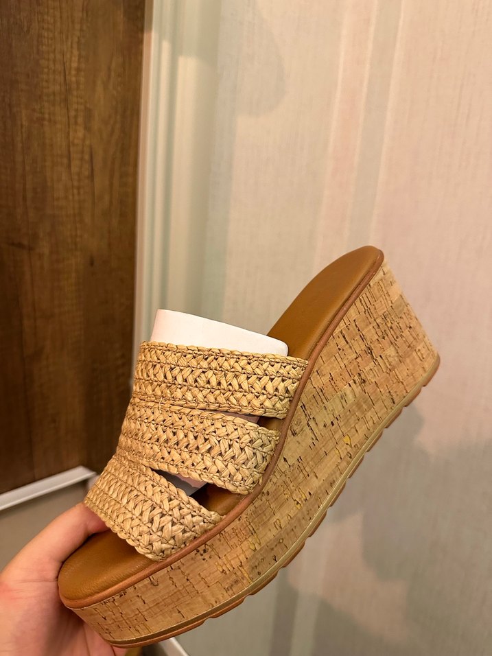 Bej Dolgu Topuklu Kadın Espadril Terlik