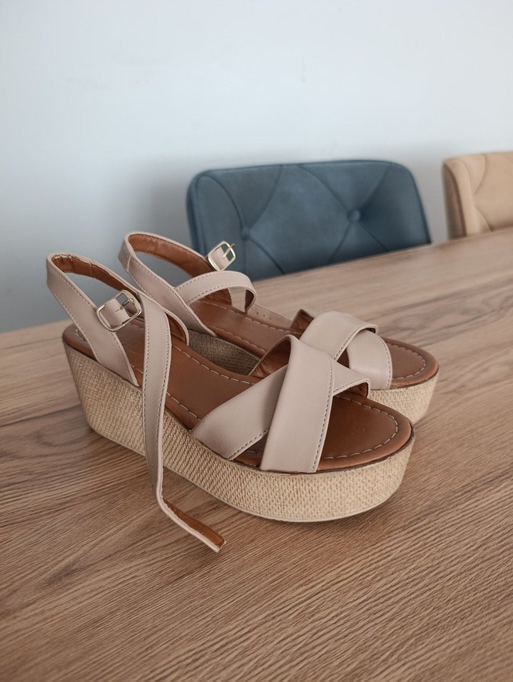 Bej Dolgu Topuklu Kadın Sandalet