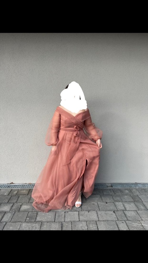 Bej renkte, drape detaylı, uzun ve bol kesim hamile abiye elbise. Straplez yaka ve askılı kollara sahip, yumuşak sentetik kumaştan üretilmiş, bohem tarzda, düğün için uygun. Sadece bir kez giyilmiştir. Tek kusuru, elbisenin etek kısmının sürtünmeye bağlı olarak hafif aşınmış olmasıdır; bu durum fotoğraflarda açıkça belirtilmiştir. Ölçüler: Kol: 53 cm Bel: 84 cm Boy: 155 cm