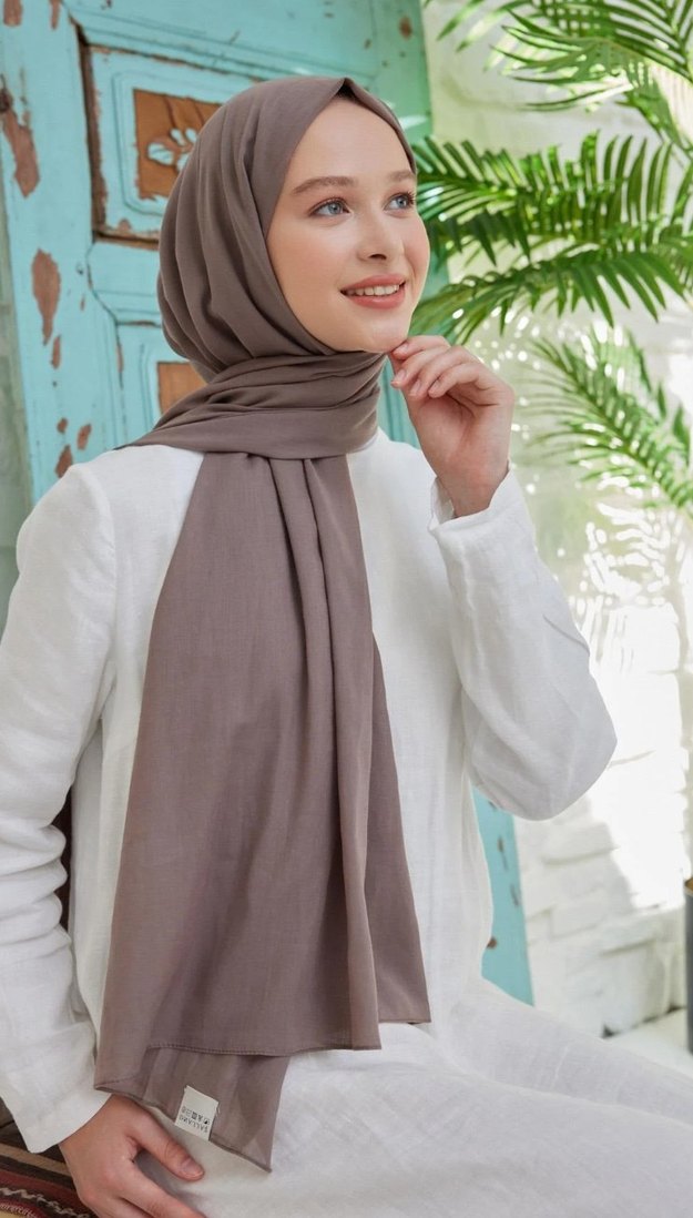 Bej renkli pamuklu, drapeli tasarıma sahip şal. Minimalist ve sade sokak stiline uygun, yumuşak ve rahat kumaş.