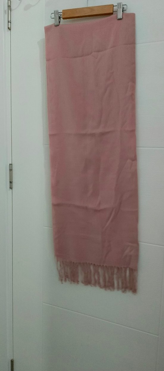 Pastel bej renkte, ipeksi dokulu ve drapeli tasarıma sahip kadın şal. Püskül detayları ile bohem tarzı yansıtıyor.