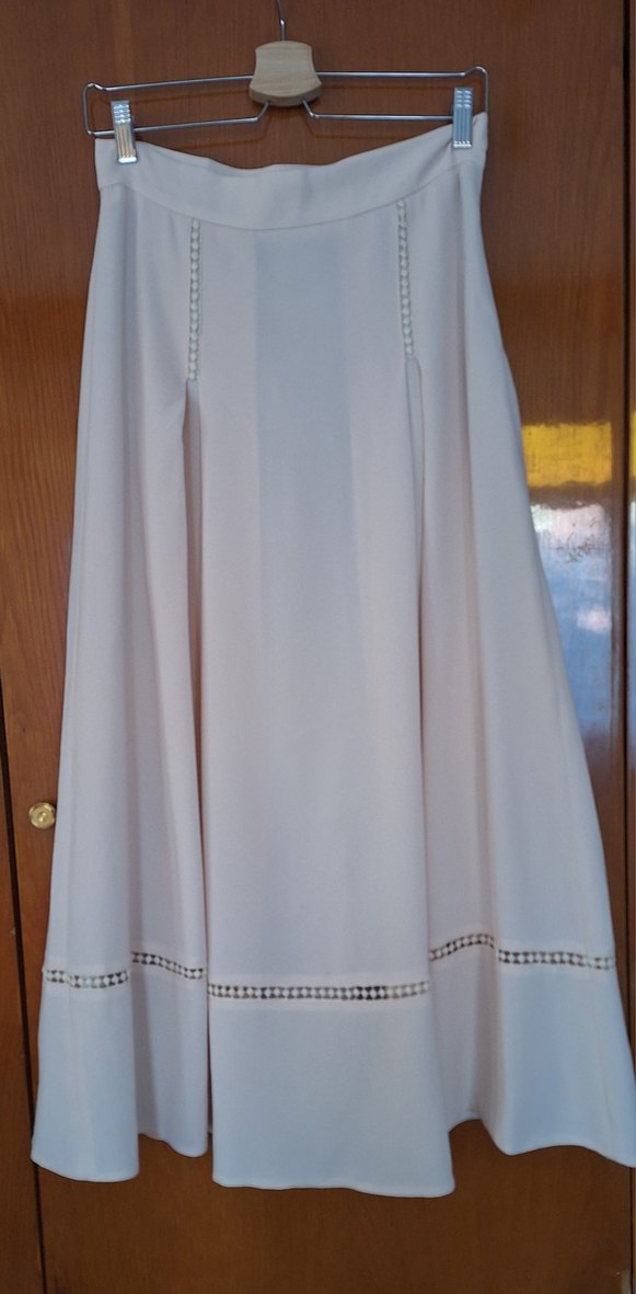 Bej renkte, drapeli tasarıma sahip, ipeksi dokulu ve regular fit uzun kadın eteği. Pastel tonu ve klasik stiliyle ofis ,günlük ve özel günler için uygundur.