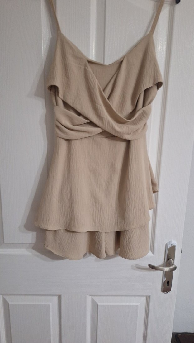 Bej Drapeli Kısa Kadın Tulum