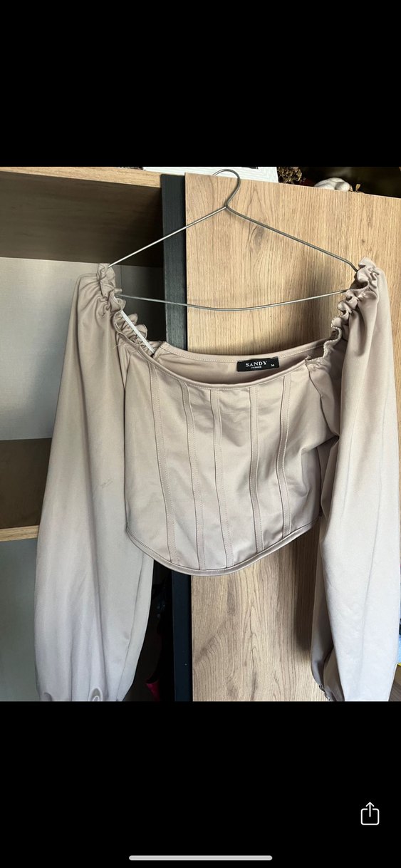 Bej renkli, straplez ve drapeli detaylara sahip bu bluz, midi boyda ve vücuda oturan kesimiyle günlük kullanıma uygundur.