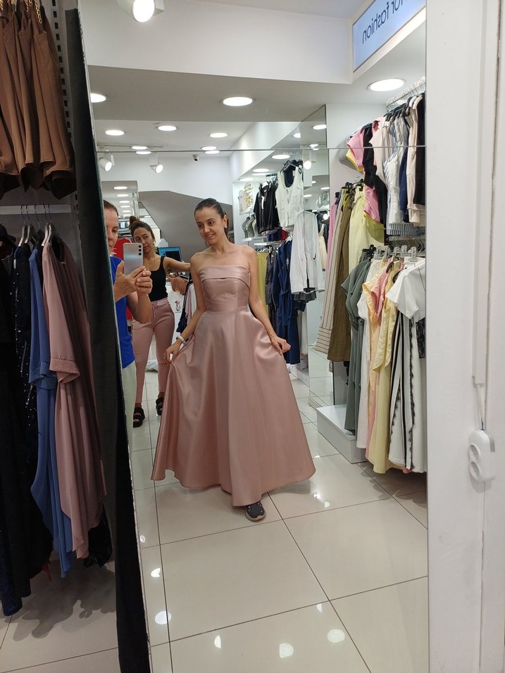 Bej Drapeli Straplez Uzun Abiye Elbise