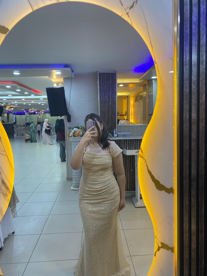 Drapeli ve kayık yaka, kolsuz uzun abiye elbise pullar dökülme yapmaz giyen kişi 70 kg - 168 boyundadır drapeler zarif bir görüntü sağlar ELBİSE SADECE 1 SAAT GİYİLDİ YIKANMAYADA UYGUNDUR. PAZARLIK PAYI VARDIR