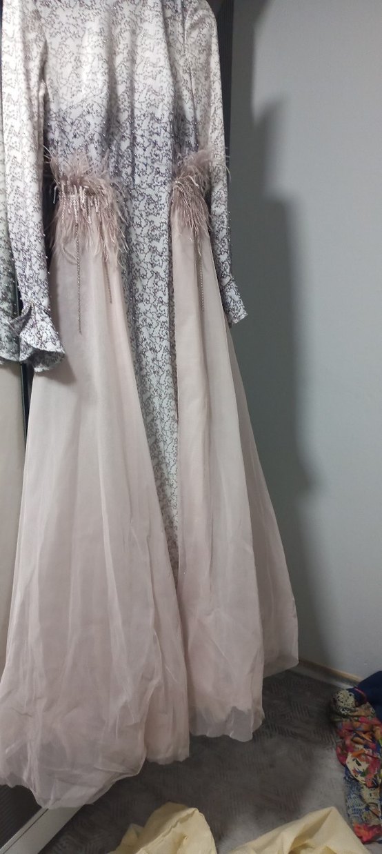 Bej renkte, drapeli uzun abiye elbise, askısız ve kolsuz tasarıma sahiptir. Regular fit olup, bohem tarzı ve klasik şıklığı yansıtır. Nikah ve özel davetlere uygundur. ✨