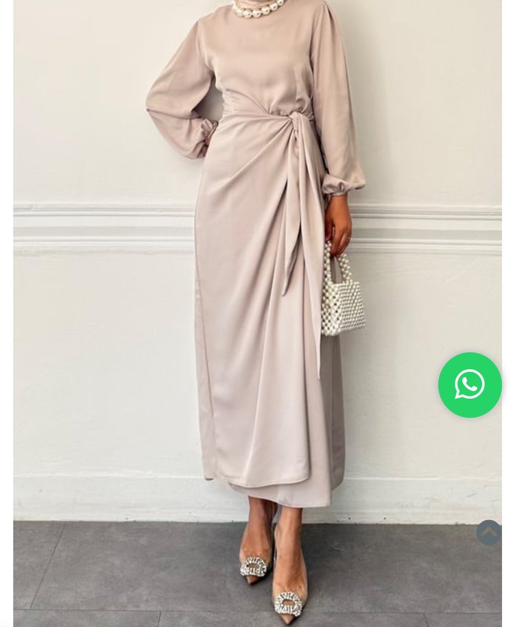 Yüksek yakalı, drapeli ve ipeksi kumaştan bej uzun elbise. Klasik ve zarif görünüm için regular fit 1 kere giyildi #tesettür #elbise