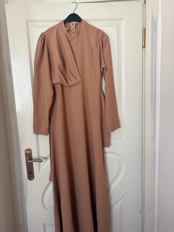 Bej Drapeli Uzun Kadın Elbise