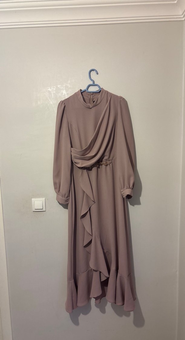 Bej Drapeli Uzun Kadın Elbise
