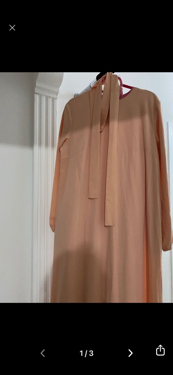 Bej renkli, drapeli uzun elbise, halter yaka ve uzun kolludur. Rahat kesimli, ipeksi dokulu kumaştan yapılmıştır, günlük kullanıma uygundur. 0 üründür Hiç giyilmedi