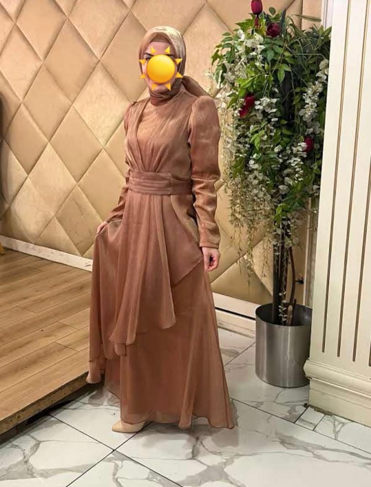 Bej renkte, yüksek yakalı ve uzun kollu, drapeli tasarıma sahip uzun elbise. Düz kesimi ve sade stiliyle düğünler için uygun, yumuşak sentetik kumaştan üretilmiştir. *Aşırı rahat kumaşı yapısı ve kalıbı *Kesim, tadilat vb. İşlem yapılmadı *38 -40 beden uyumlu *Sadece bir kere giyildi *Kuru temizleme işlemi yapıldı *Pazarlık yapılır