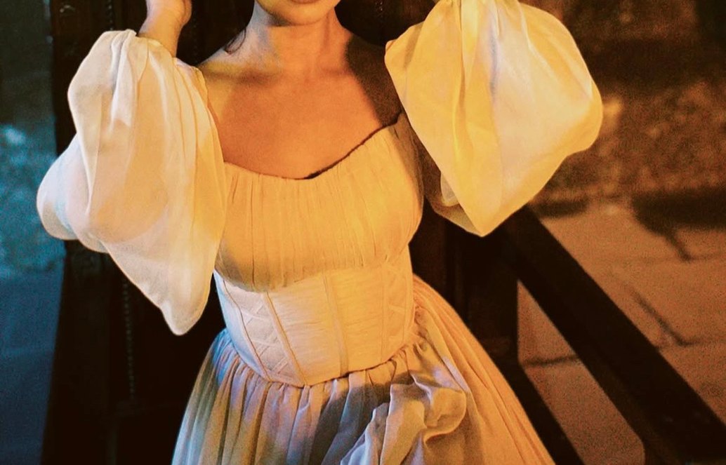 Bej renkte, tek renk, drapeli ve kayık yaka uzun kollu, vücuda oturan bohem tarzda kadın elbisesi. Vintage ve şık, özel günlere uygun.