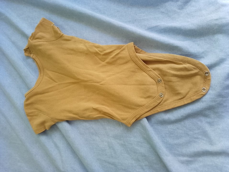 Bej renkli, düğmeli, kolsuz, yuvarlak yakalı bebek erkek body, yumuşak sentetik kumaştan üretilmiştir.