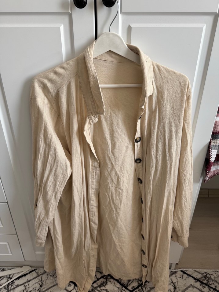 Bej Düğmeli Bohem Kadın Keten Gömlek