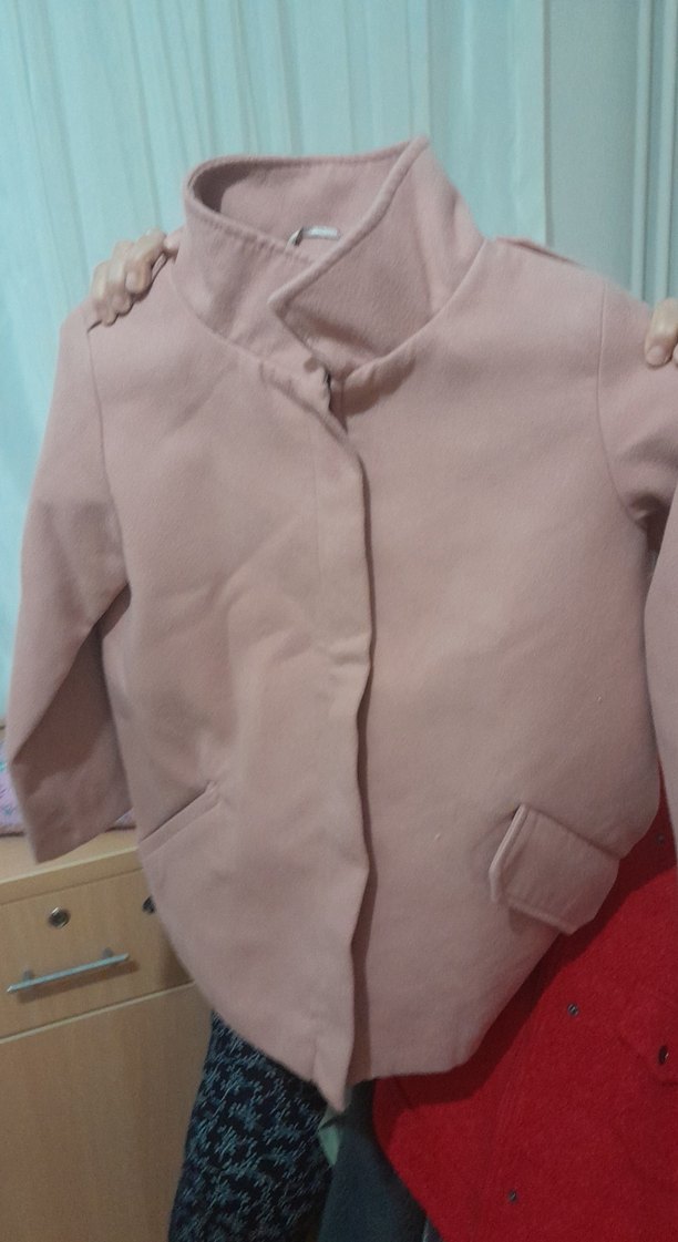 Kız çocukları için bej renkli, düğmeli ve yakası kesimli ceket. Sentetik kumaştan yapılmış, normal kesim ve desensiz tasarıma sahip, trend sokak stili için uygun.