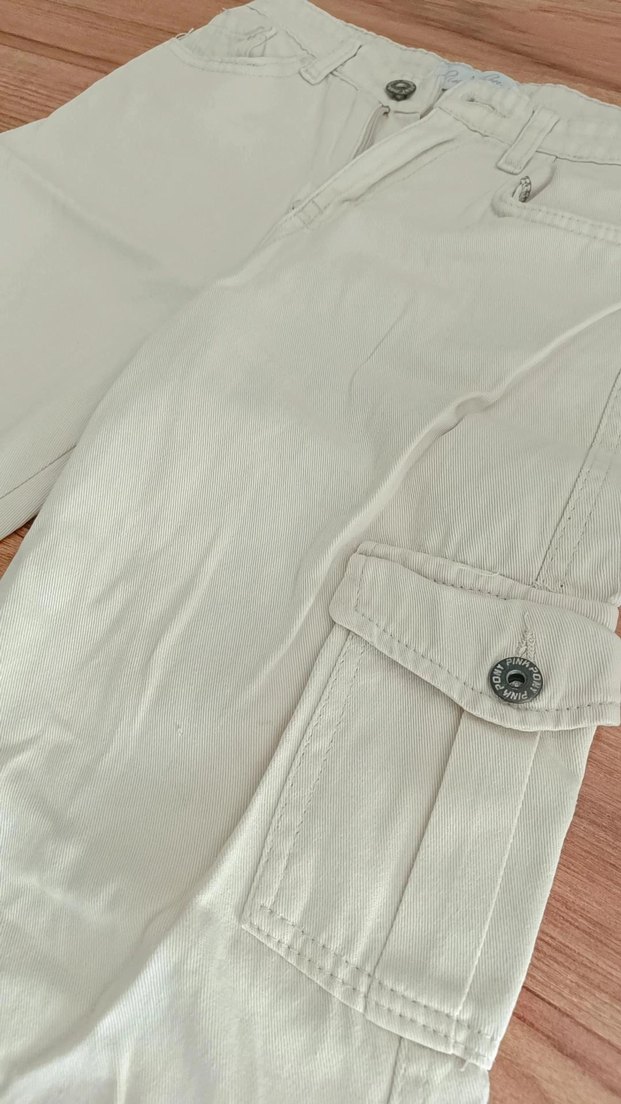 Bej renkte, pamuklu kumaştan yapılmış, düğmeli, normal boy cocuk pantolonu. Rahat kesimi ve günlük sokak stili için uygundur. temiz üründür Pink ponny markadır kesimi çok şık