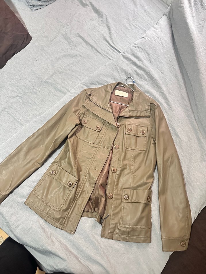 Bej Düğmeli Deri Kadın Ceket