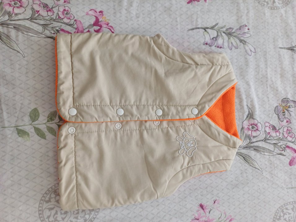 Düğmeli, yakalı ve işlemeli detaylı bej renkli erkek çocuk yelek. Sentetik kumaştan, dar kesim ve sokak tarzı için uygun. 2 yaş içindir kusuru yoktur