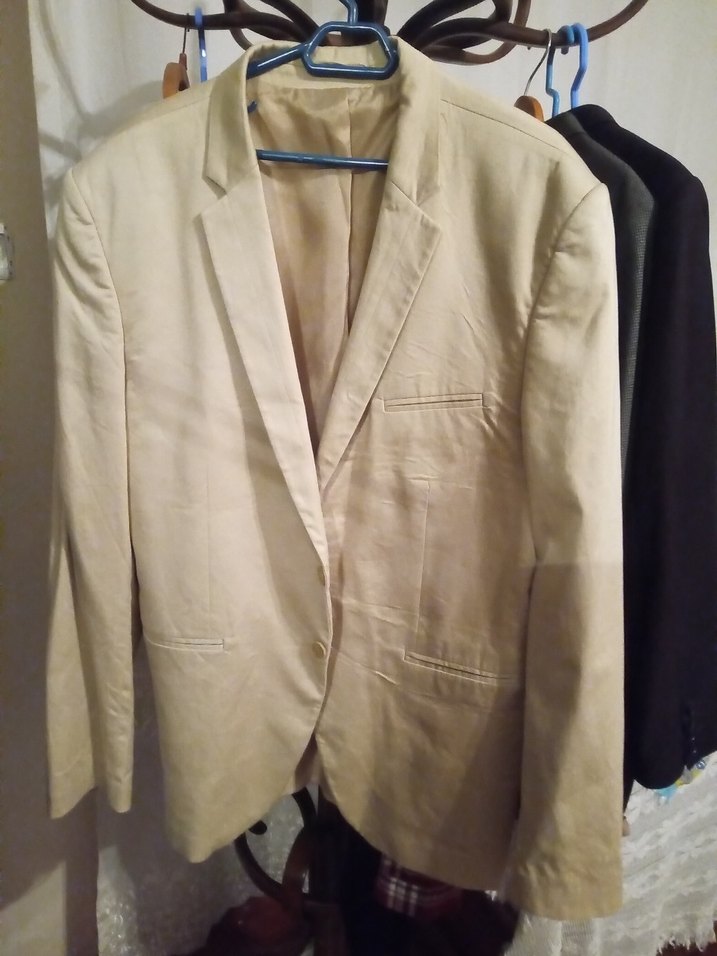 Açık bej renkli, FC 54- 6 drop düğmeli erkek ceket. Normal kesim, uzun kollu ve desen içermeyen tasarımıyla ofis ve sokak stiline uygundur.