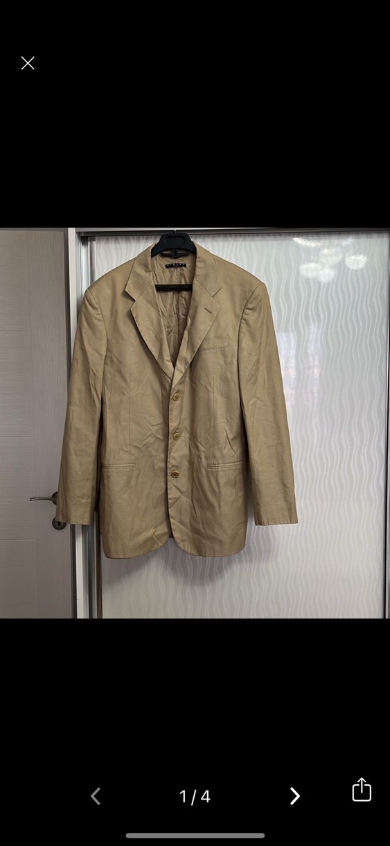 Bej renkli, düğmeli erkek ceket. Normal kesim, uzun kollu ve klasik yakalıdır. Ofis kullanımı için uygundur, parlak bir görünüme sahiptir. Bir sorunu yoktur