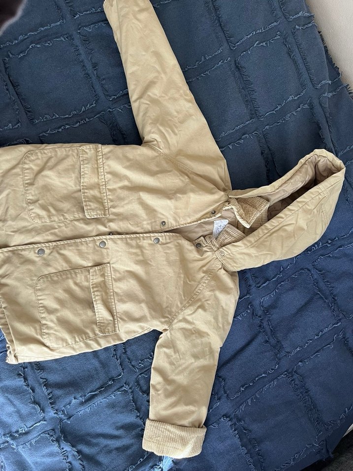 Bej renkli, keten kumaştan erkek çocuk ceketi, düğmeli ve regular fit kesime sahiptir. 1 sene kullanıldı resimde görüldüğü gibi