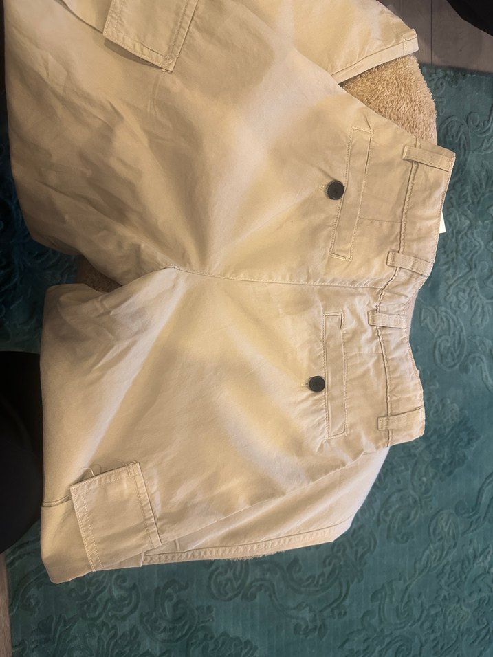 Bej renkli, keten kumaştan erkek çocuk pantolonu. Düğmeli ve bol kesim, sade ve streetwear tarzında.