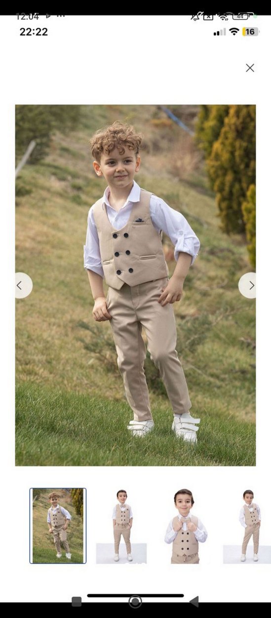 Bej Düğmeli Erkek Çocuk Yelek Takımı