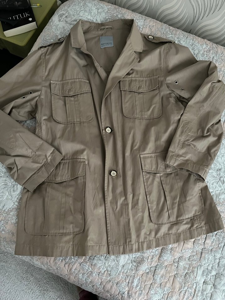 Bej renkli keten kumaştan düğmeli erkek ceket. Uzun kollu, regular fit ve notched yaka detaylı. Günlük rahat kullanım için uygun, dört ceplidir.