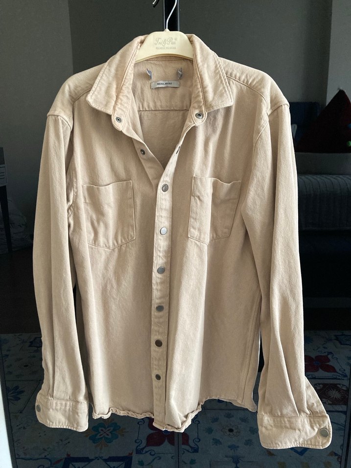 Bej Düğmeli erkek kot ceket