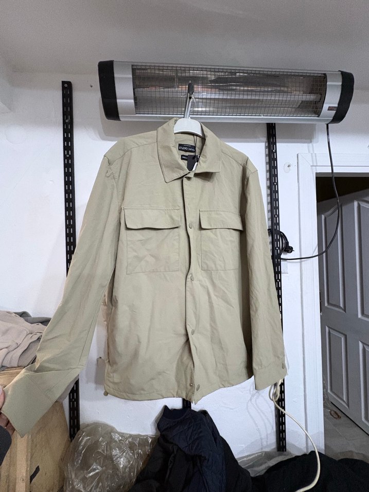 Bej renkte, düğmeli ve normal boyda erkek ceketi. Uzun kollu, regular fit ve yaka tipi kesik yakadır. Günlük rahat kullanım için uygundur.