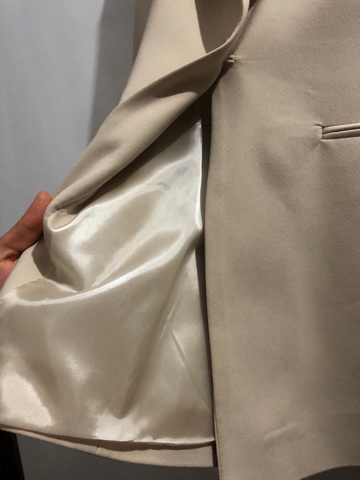 Bej Düğmeli İpek Görünümlü Midi Hamile Ceketi