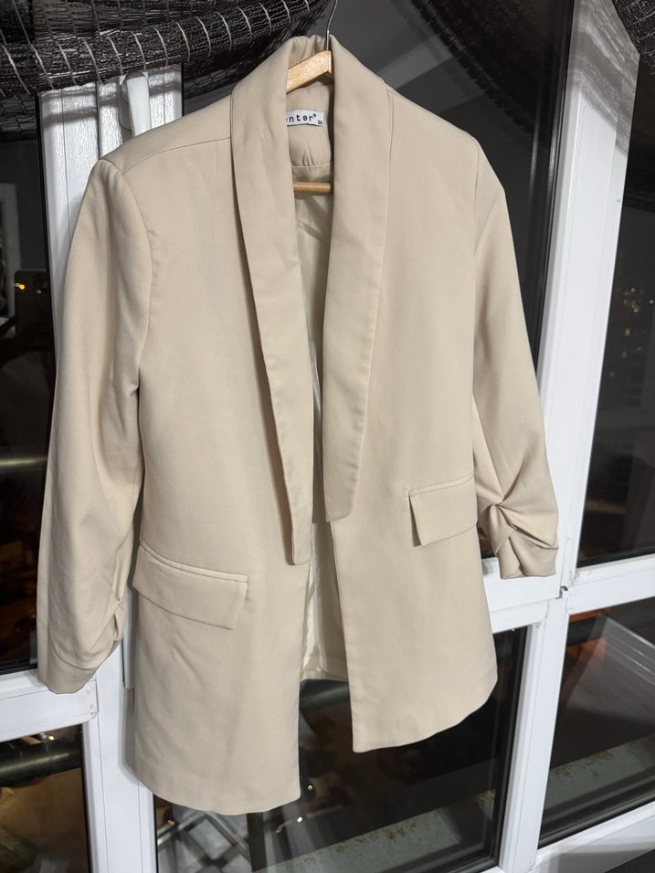 Bej renkli kadın blazer ceket, düğmeli ve notched yaka detaylıdır. Uzun kollu, normal kesim ve midi boyda, sentetik kumaştan üretilmiştir. Ofis ve günlük kombinlere uygundur. Şık ve rahat bej rengi blazer ceket. Günlük kombinleriniz için idealdir. Mevsimlik kumaşı var. Yaz sıcağında askılı ile ya da kışın içten bi boğazlı bluz ile kullanabilirsiniz. Renk olarak tüm kombinlere uyumludur. Sevgiler
