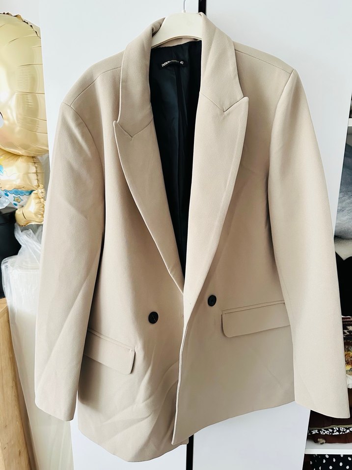 Bej renk, kesik yakalı ve düğmeli kadın blazer ceket. Uzun kollu, normal kesim ve midi boydur. Ofis ve günlük sokak stiline uygundur. Hafif, desensiz ve sentetik kumaştan üretilmiştir. 40 beden ancak 38 beden de uyumlu