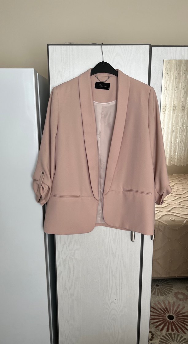 42,44 bedene uygundur.Bej renkli, düğmeli, yakalı ve uzun kollu kadın blazer ceket. İpeksi kumaştan, düz ve normal kesimlidir. Ofis ve günlük kullanıma uygundur. ✨