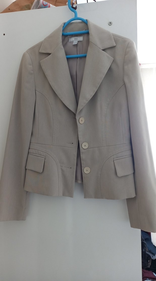 Bej Düğmeli Kadın Blazer Ceket