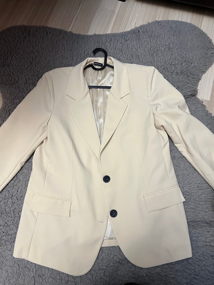 Bej Düğmeli Kadın Blazer Ceket