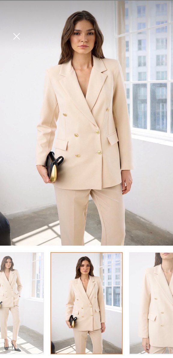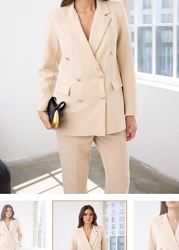 Bej renkli, düğmeli, normal boy midi kadın blazer ceket. Strappy kollu, klasik şıklık sunan, iş ortamına uygun sentetik kumaştan üretilmiştir.
