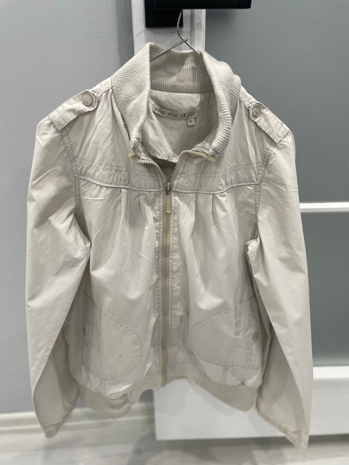Bej renkli, düğmeli ve uzun kollu kadın ceket. Yumuşak keten kumaştan üretilmiş, kesimi rahat ve salaş. Notlu yaka detayıyla gündelik kullanıma uygun.