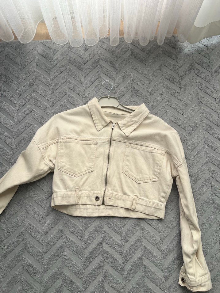 Bej renkte, keten kumaştan yapılmış, düğmeli ve uzun kollu, geniş kesim kadın denim ceket. Notch yaka ve günlük kullanıma uygun rahat stil sunar.